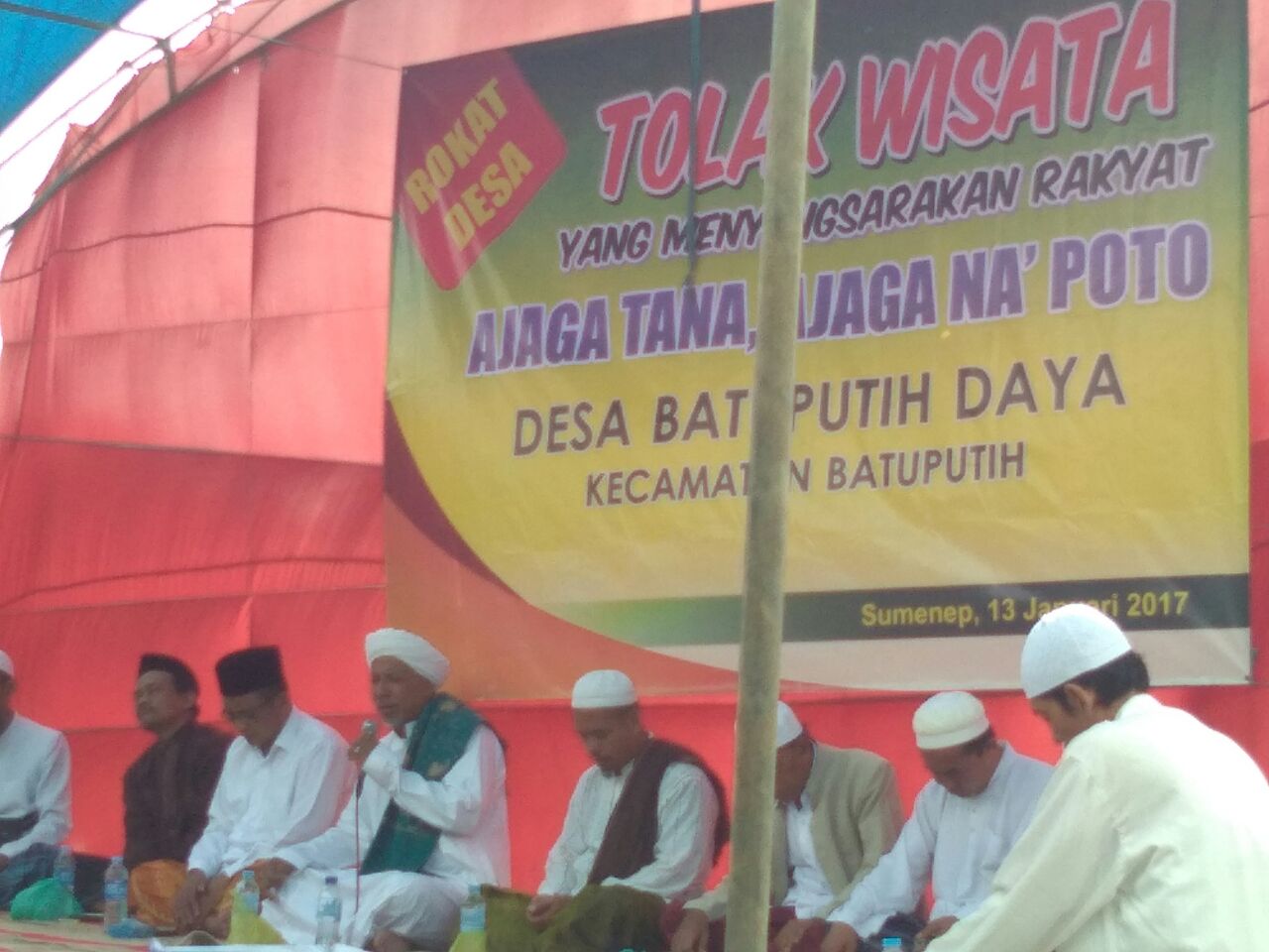 Acara penolakan investor itu dikemas dalam rangka doa bersama dan tausiyah. Hadir pada kesempatan tersebut ketua PC NU Sumenep Panji Taufiq, Ketua GP Ansor Em Muhri, K. Jurjis Nuzammil, pengasuh Sumber Tombet K. Ach. Mawardi dan juga mantan anggota DPRD Jatim Darwies Maszar. (asm/hy)