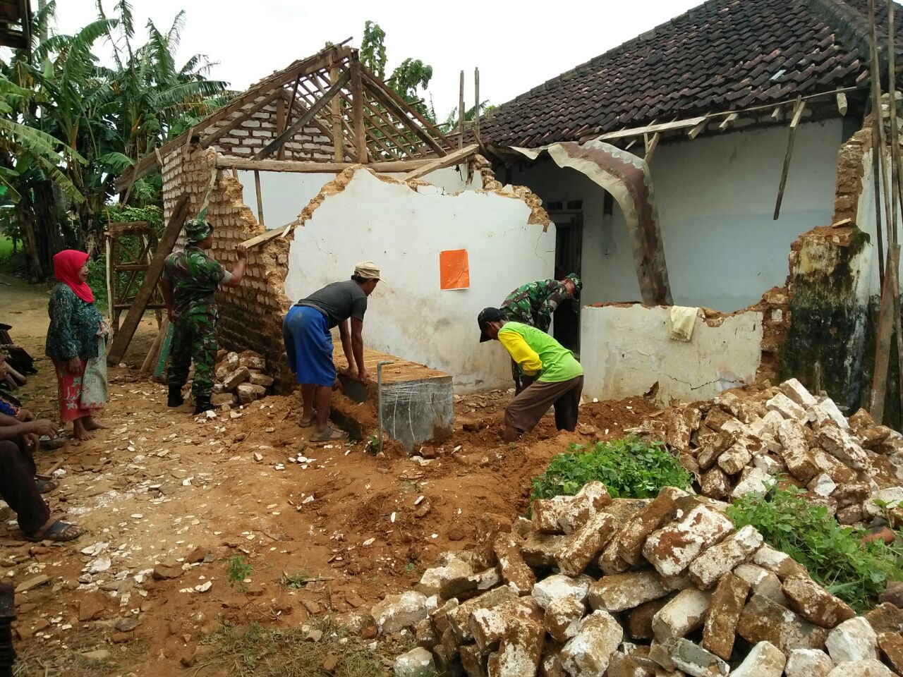 Kegiatan pembersihan sisa bangunan yang roboh dan dilakukan oleh kelurga, warga sekitar dan anggota Koramil 0827/03 Manding  dipimpin oleh Batuud Pelda Muclis Riady bersama Polsek, Perangkat Desa dan warga setempat.
