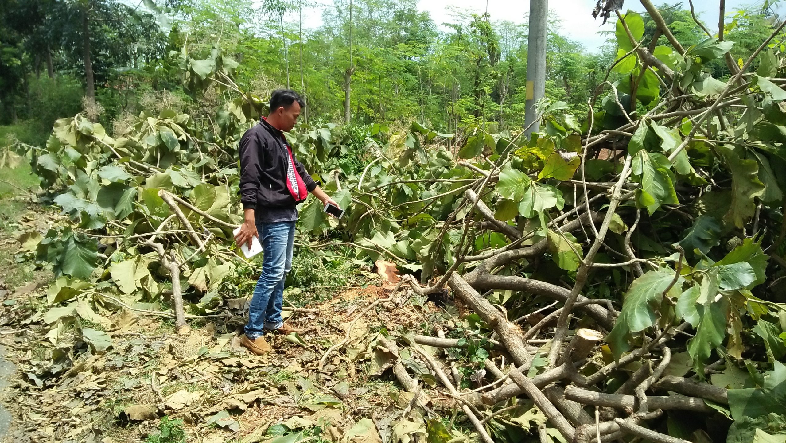 “Tidak hanya di siang hari mas, tadi malam pun sekitar pukul 20.00 Wib terjadi penebangan kembali. Pokoknya kayu-kayu besar disepanjang jalan itu dibabat habis oleh oknum,” tegasnya.