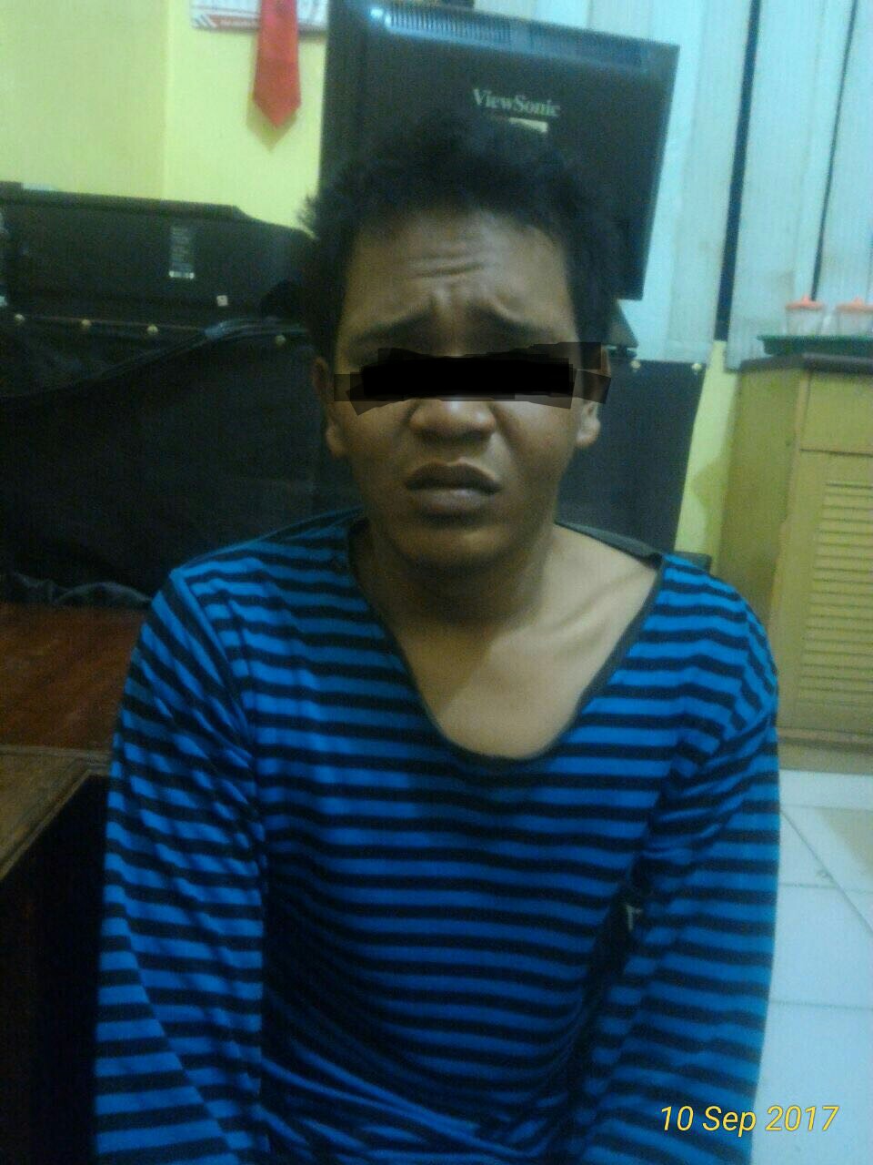 Moh. Sadat, warga Dusun Kaleleng, Desa Batuan, Kecamatan Batuan, Kabupaten Sumenep, Madura, Jawa Timur, harus menerima hadiah timah panas dari satuan unit resmob Polres Sumenep saat melakukan aksi pencurian, di jalan Sultan Abdurrahman Perum BSA Ds. Kolor, Kecamatan Batuan, Kabupaten Sumenep. Kamis 7/09/2017.