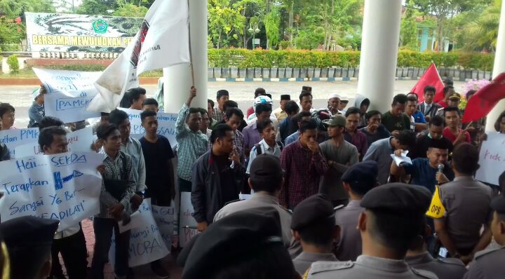 Iklal korlap Aksi menyampaikan saat Orasi ” Jelas hal ini tidak sesuai dan telah menyalahi UU RI NO 5 tahun 2014. Dan seharusnya bapak memberi transprasi klo memang ke dua belah pihak sudah di pertemukan”. Tegas Korlap aksi