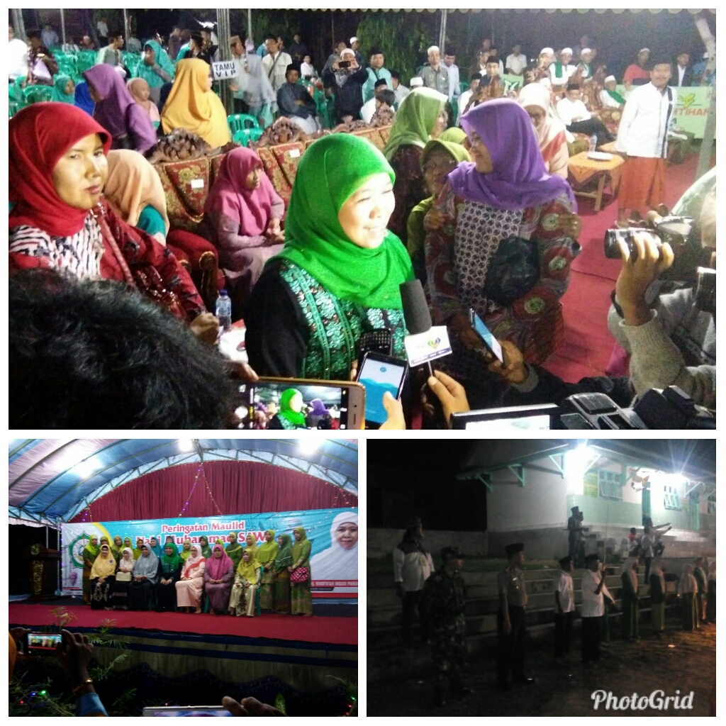 atas kehadiran Mensos RI (ibu Khofifah) dalam giat peringatan Maulid Nabi Muhammad SAW, dan perjuangan Ibu Khofifah telah menaikkan dana PKH, serta kelancaran pendistribusian Raskin, dan kedepan dari Mensos RI malahan rencananya ibu hamil juga akan mendapatkan tunjangan dari Negara.