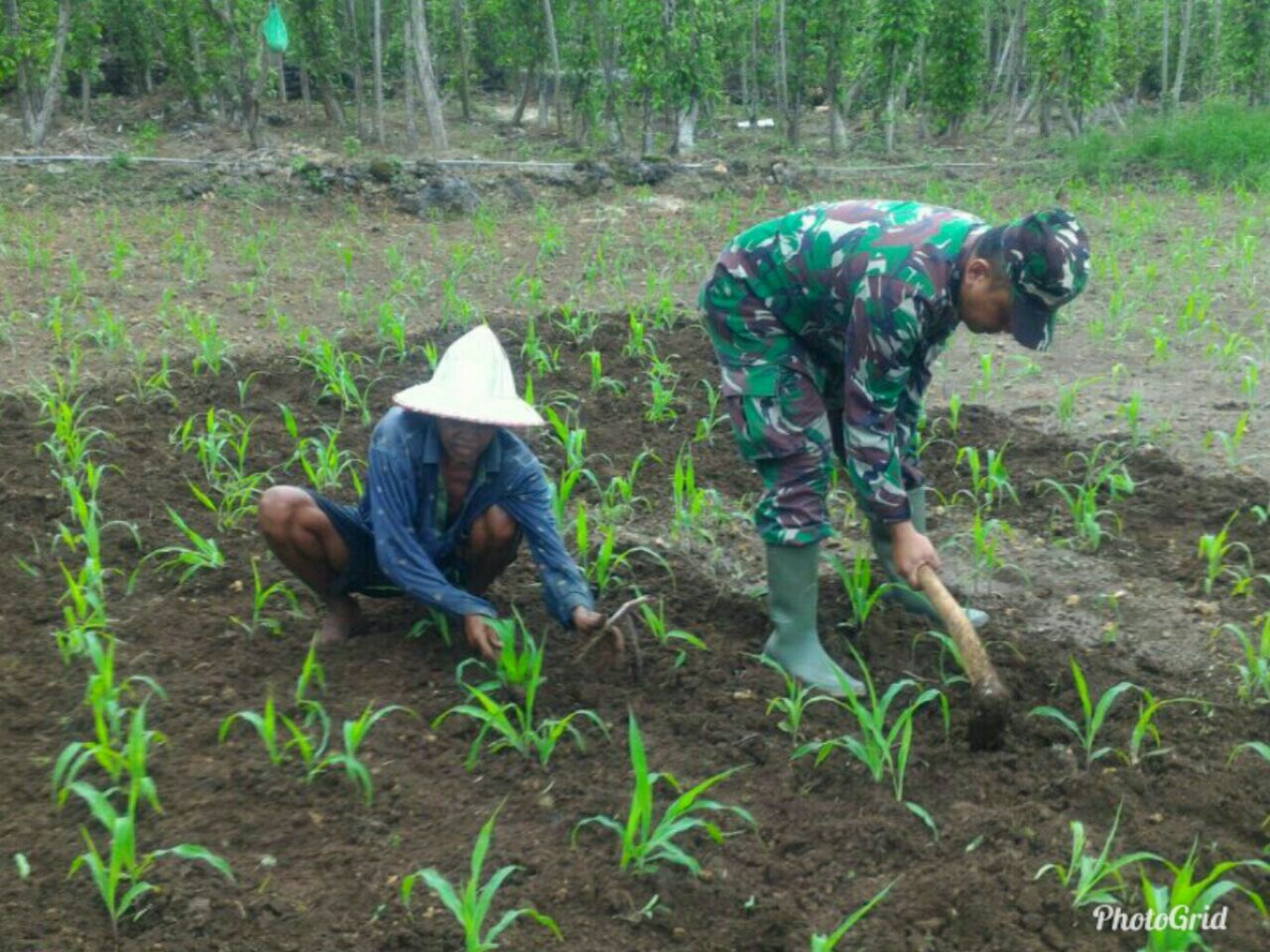 Pagi ini, Sertu Kurniawan Babinsa Pakandangan Barat Koramil 0827/04 Bluto ikut membantu warganya dalam merawat tanaman jagungn di Dusun Tegal Pakandangan Barat, Kecamatan Bluto, Kabupaten Sumenep, Madura-Jawa Timur. Rabu, (29/11/2017)