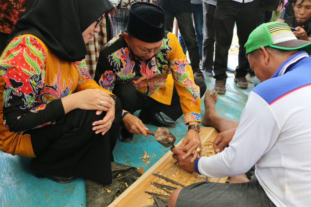 Selain itu, kesemarakan ditambah dengan bupati Sumenep ikut mengukir kayu untuk sebuah patung. Dengan penuh semangat orang nomor satu di lingkungan pemkab Sumenep tampak langsung memahat dengan alat yang sudah disediakan. Aksinya itu disaksikan oleh juru ukir profesional.