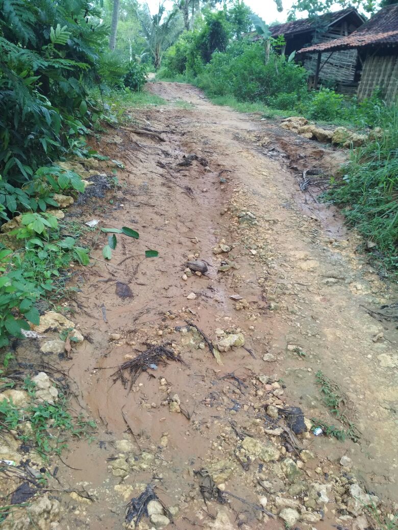 Kondisi jalan rusak berat yang masuk akses jalan warga untuk melakukan akstivitas keseharian. terutama saat musim hujan Kendaraan sepeda motor tidak bisa lewat karena Jalan licin terutama sepeda motor harus ekstra hati-hati karena bisa terjatuh.
