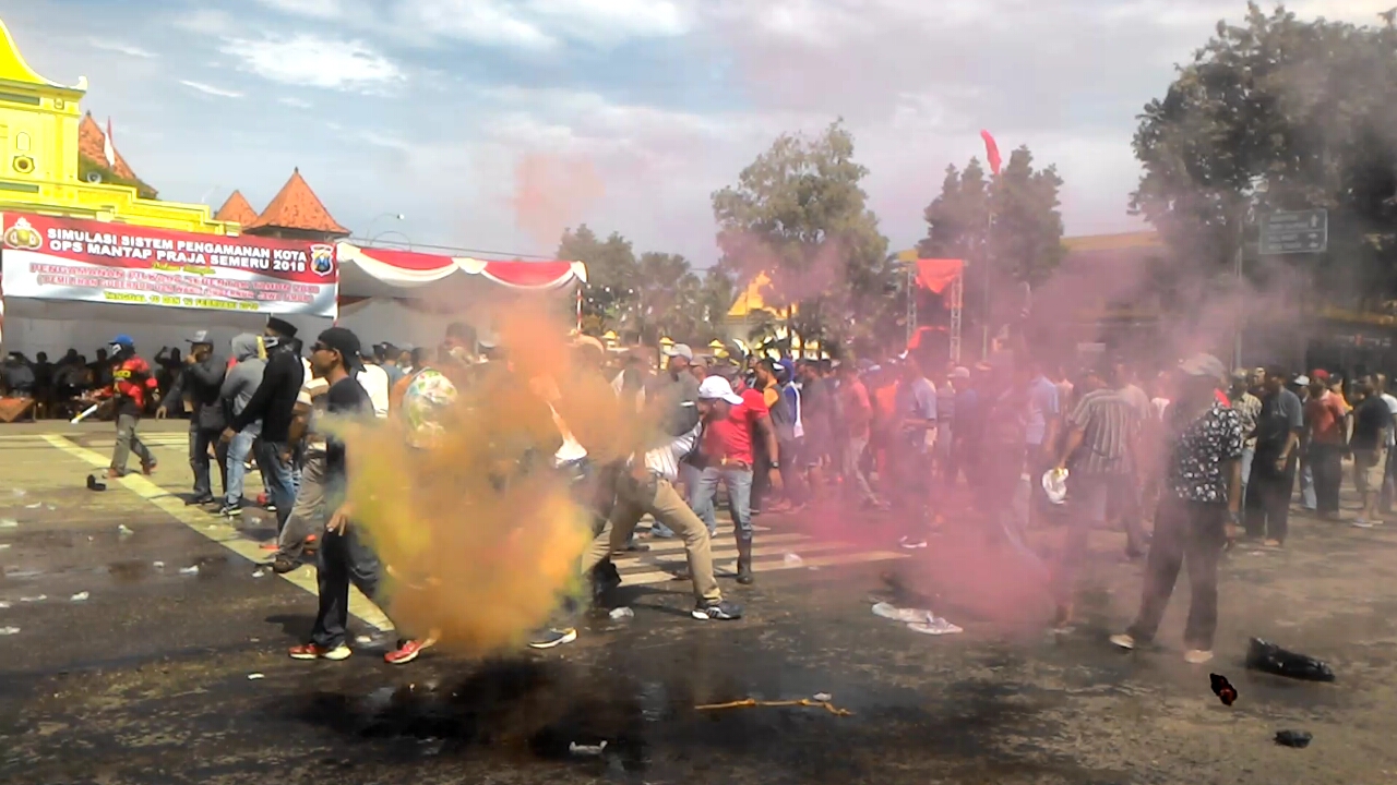 Bentrok Antar Pendukung Cawagub Jatim Memanas, Satuan Polres Sumenep Lepaskan Gas Air Mata