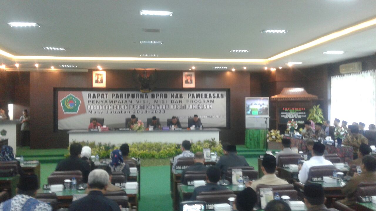 PAMEKASAN, (TransMadura.com) -DPRD Pamekasan, Madura, Jawa Timur, menggelar sidang istimewa pemaparan visi-misi kedua pasangan Calon Bupati (Cabup) dan Calon Wakil Bupati (Cawabup)