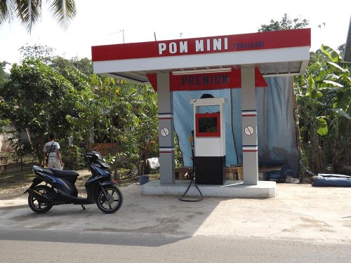 Bahan Bakar Minyak (BBM) bersubsidi para pengecer yang sebelumnya biasa menggunakan botol. dengan perkembangan zaman teknologi para pengecer ber inovasi dengan cara praktis menggunakan dispenser.