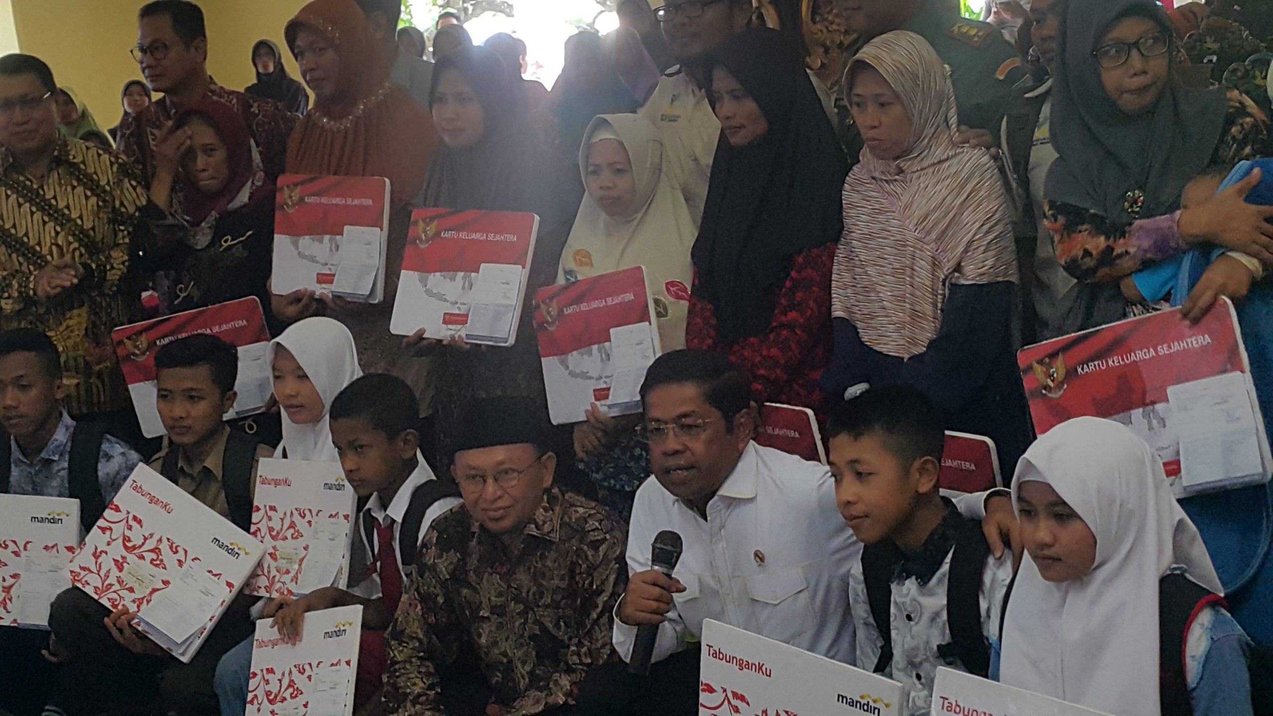 Peluncuran penyaluran bantuan sosial Program Keluarga Harapan (PKH) dan Bansos Pangam Rastra Kabupataen Sumenep, Madura, Jawa Timur, oleh Kementrian Sosial (Kemensos) Republik Indonesia di Pendopo Agung, Minggu (4/3/2018).