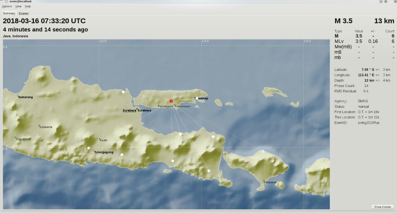 Peristiwa gempa bumi terjadi pada Jum’at (16/03/2018) pukul 14 : 33 : 20 tepatnya lokasi gempa di darat pada jarak 11 kilometer dengan kedalaman 13 kilo meter.