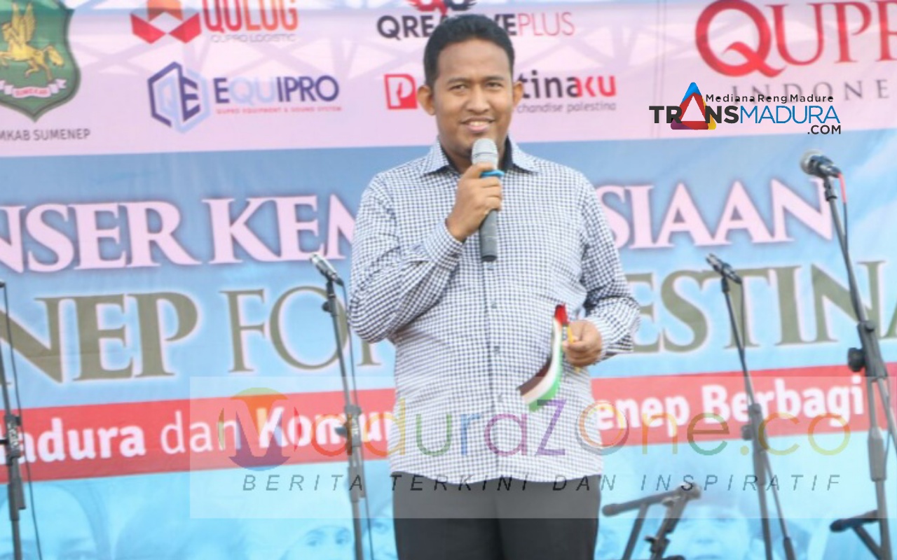 Wabup menyampaian pernyataan, pada saat menghadiri Konser Kemanusian Sumenep for Palestina, di GOR A. Yani, Panglegur, Sabtu (17/3/2018).