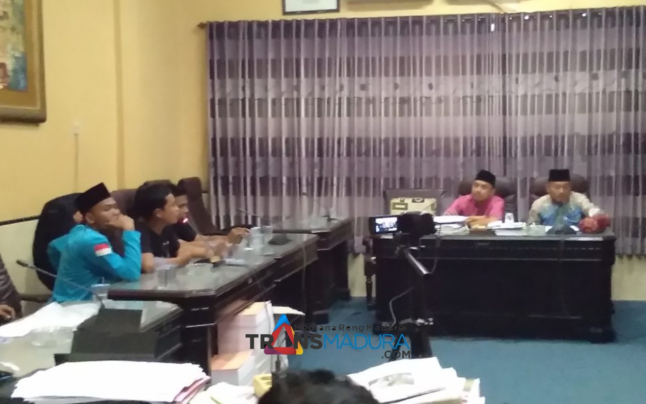 Sejumlah aktifis yang tergabung dalam Forum Komunikasi Mahasiswa Sumenep (FKMS) melakukan aksi ke kantor DPRD Sumenep, Madura, Jawa Timur Kamis (29/3/2018). Hal itu mereka kembali mempertanyakan kinerja wakil rakyat ini.