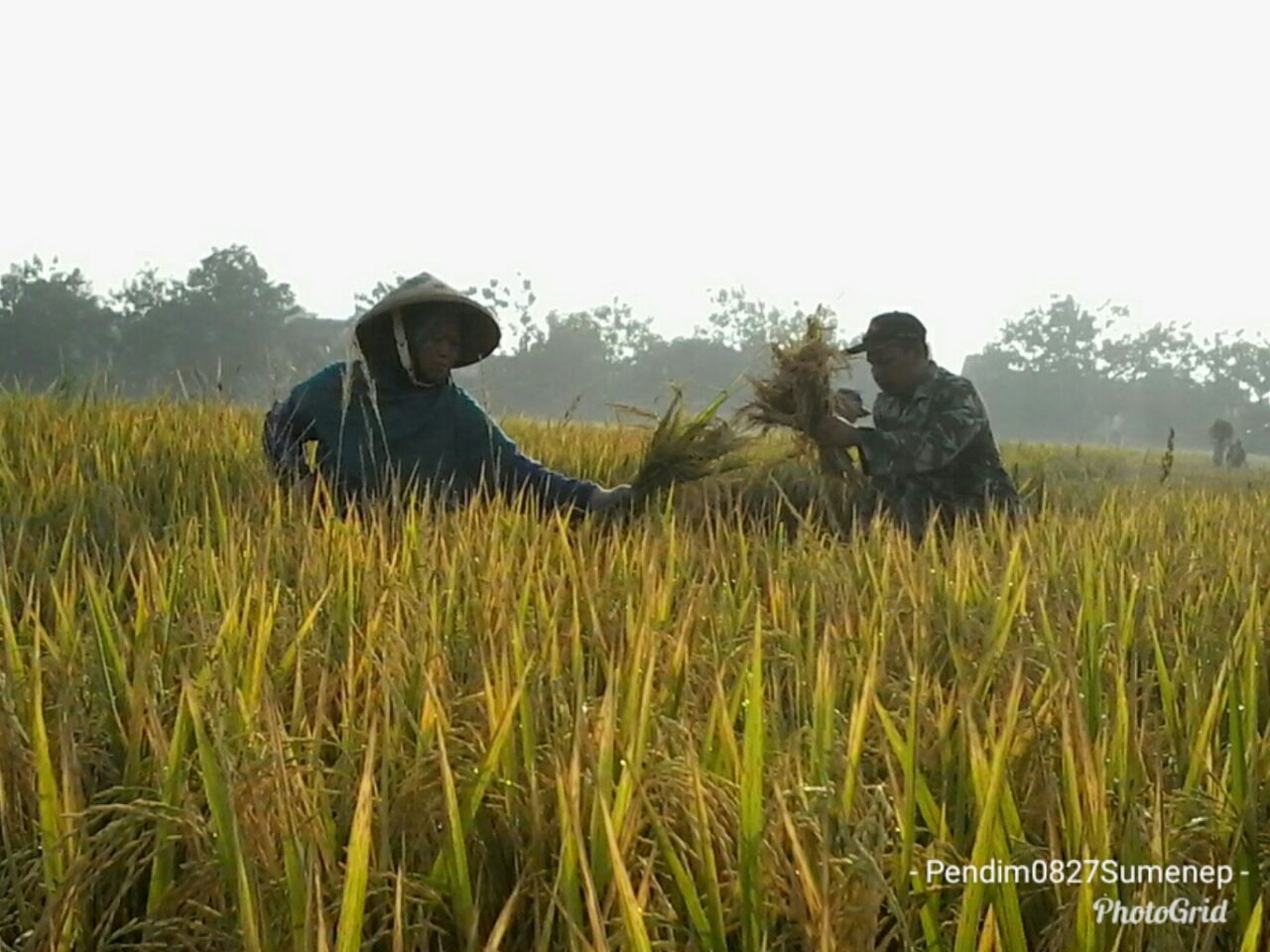 Kali ini di kelompok tani (Poktan) “Saor II” selaku pemilik lahan Bapak Hamidi telah dilaksanakan panen padi yang dibantu oleh Anggota Koramil 18/Sapeken Kodim 0827 Sumenep. “Dengan luas hamparan 1,5 Hektar yang ditanami padi jenis varietas Seerang dan yang di panen saat ini hanya 1 Ha dengan menghasilkan gabah 4000 Kg untuk provitas 4 ton/ha” kata Hamidi.