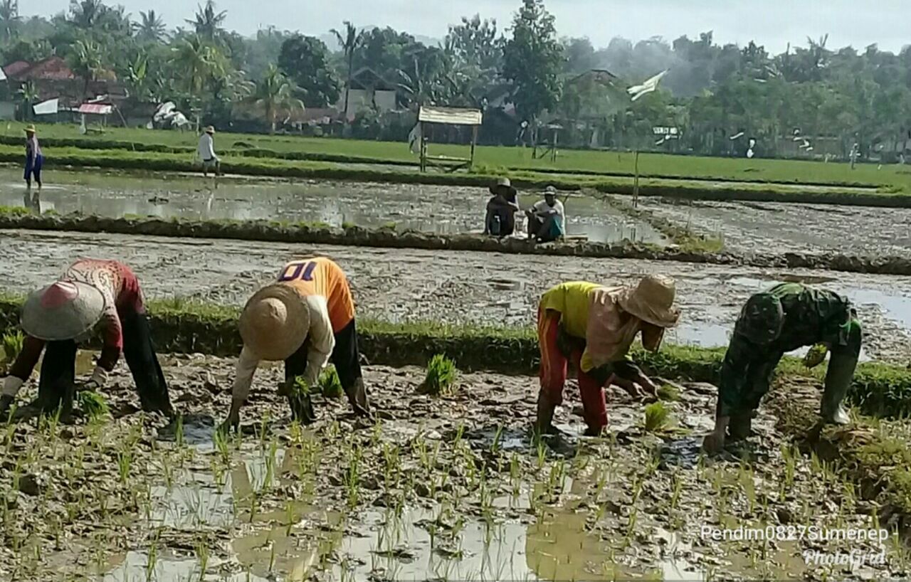 Disela mebantu menanam padi Babinsa Koramil 0827/05 Lenteng Sertu Sukarno berharap para petani harus mengetahui dan memahami terutama pemilihan benih begitu juga penyiapan persemaian, pengolahan tanah, cara semai, cara tanam padi sawah akan mendapatkan tanaman yang sehat, produktivitas yang tinggi dengan masukan biaya yang rendah.