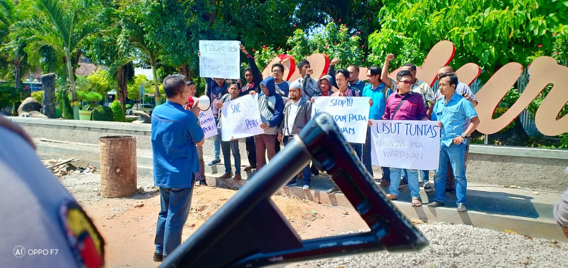 Puluhan wartawan dari berbagai Asosiasi PWI dan AMOS di Sumenep, Madura, Jawa Timur, melakukan orasi dengan bergantian dengan bentangkan poster ” Tolak Aksi Premanisme Pada Pers” mendesak aparat kepolisian usut tuntas dalam kasus pengeroyokan terhadap kuli tinta (Wartawan) tersebut.