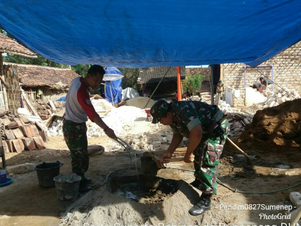 Hampir kurang lebih 3 minggu berjalan, pelaksaanan kegiatan karya bakti pasca gempa tersebut dilaksanakan oleh anggota Koramil jajaran Kodim Sumenep dengan rasa penuh tanggung jawab diantaranya terlihat anggota Koramil 0827/17 Dungkek yaitu Sertu Sunarto Babinsa Desa Bunpenang Kecamatan Dungkek.