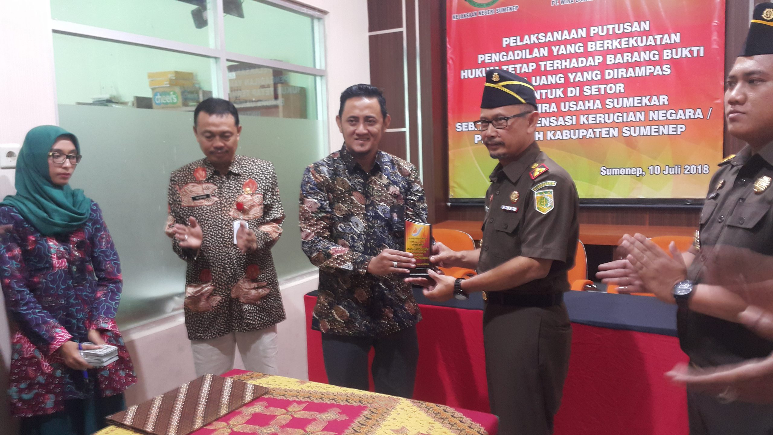 Pernyataan itu disampaikan Kepala Kejaksaan Negeri (Kajari) Bambang Panca Wahyudi Hariyadi saat pengembalian Barang Bukti (BB) hasil korupsi ke kas salah satu BUMD milik pemkab Sumenep ini. BB yang dikembalikan itu berupa sejumlah uang, dokumen dan barang.