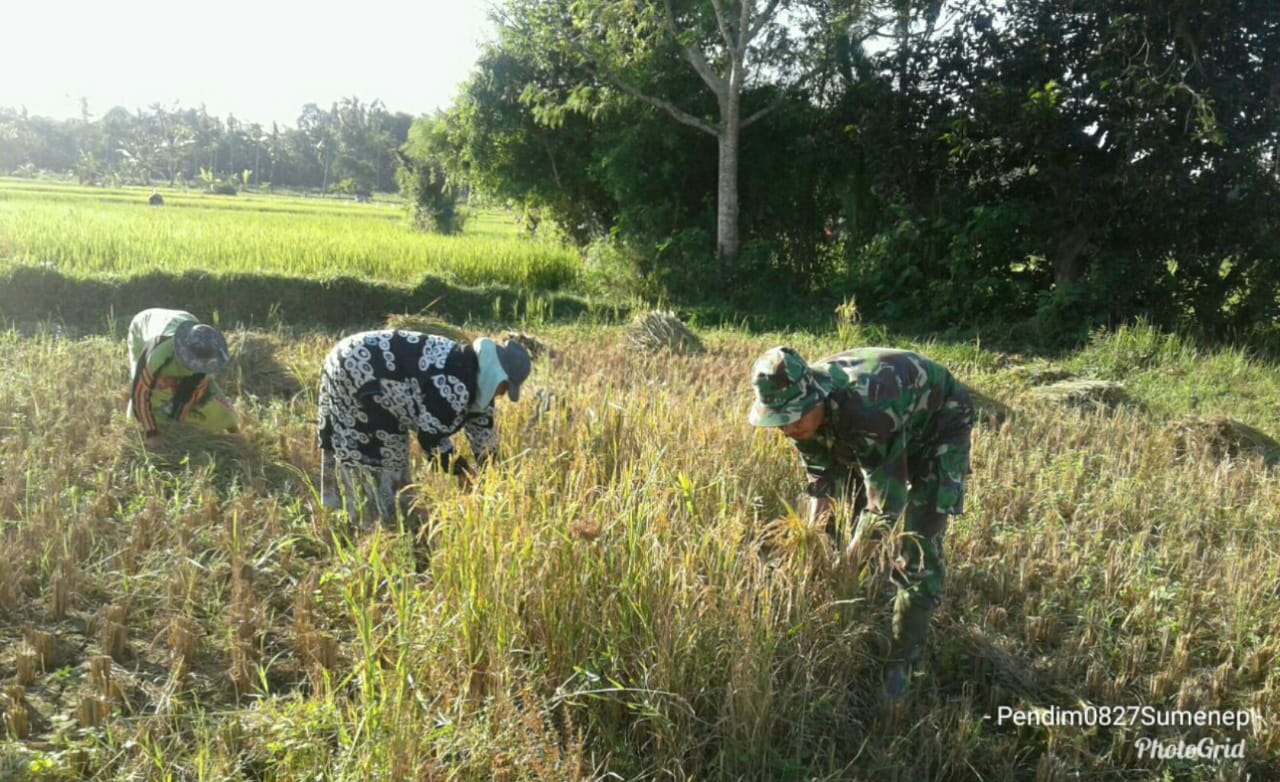 Dalam proses panen padi Serka Suwoko nampak semangat, antusias, tidak merasa canggung serta ragu meskipun pada pemanenan padi dilakukan secara manual ditengah lahan sawah milik Ibu Sumirah warga binaan Kecamatan Manding Kabupaten Sumenep. Madura-Jawa Timur.