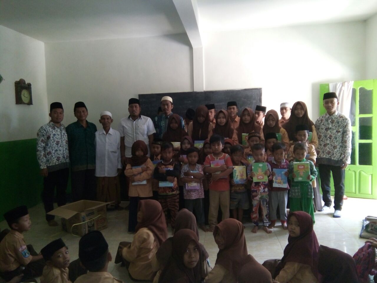 Menurutnya, 1382 Buku tulis diterima langsung oleh kepala Sekolah MI Nurul Hikmah.