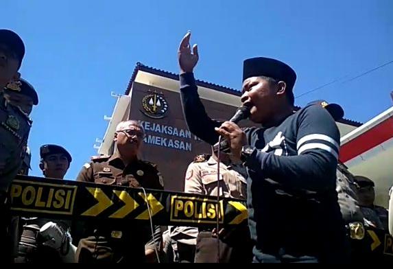 “Kami kecewa dengan diendapkannya laporan kami, padahal dalam peraturan jaksa agung RI no : per 067/A/JA/07/2007 , Bab II, pasal 3, poin B dan uu pemberantasan tindak pidana korupsi No 20/2001 sudah jelas bahwa mestinya setiap laporan yang dilporkan kepada pihak kejaksaan harus segera diperoses secara cepat, dan kamipun tambah kecewa karena kami tidak diperlakukan sama (dimarjinalkan) , padahal dalam keputusan mahkamah Agung RI no : 076/KMA/SK/VI/2009 sudah jelas bahwa kami pelapor harus diperlakukan sama dengan terlapor dalam hal pemeriksaan, akan tetapi faktanya pihak terlapor tidak dipanggil layaknya kami, malah berdasarkan pengakuan kasi intel kejari sendiri bahwa mereka (terlapor) di samperin ke kantornya yang itu juga sangat tidak etis menurut kami apabila seorang aparat penegak hukum bersikap rendahan seperti itu”.Lucu dan memalukan kata salah satu orator.