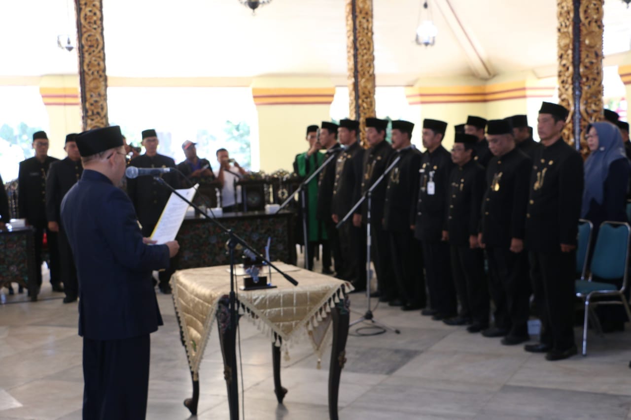 Prosesi mutasi diawali dengan pembacaan SK (Surat Keputusan) Bupati oleh Kepala BKPSDM (Badan Kepegawaian Pendidikan dan Sumber Daya Manusia) R. Titik Suryati. Setelah itu, dilakukan pengambilan sumpah oleh orang nomor satu di lingkungan pemkab Sumekar ini.