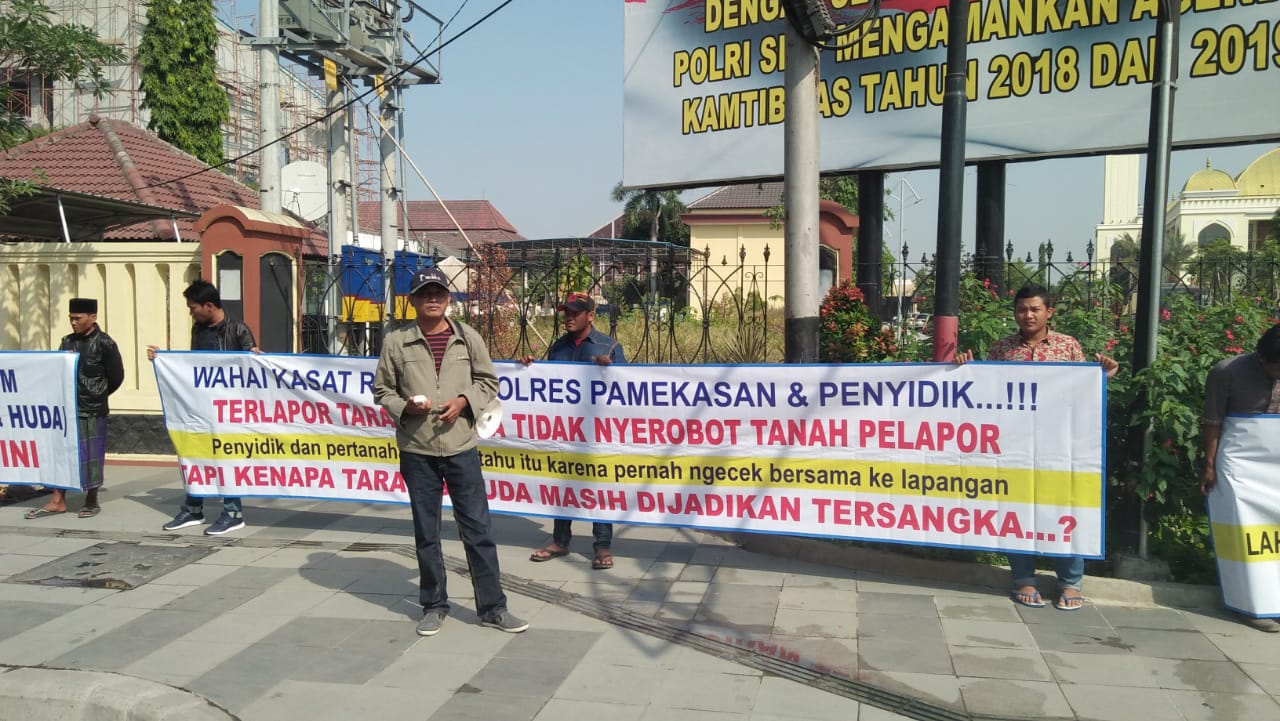 Penetapan tersangaka oleh penyidik Polres Pamekasan, dinilai tidak benar. pasalnya, 2 orang petani TARAM dan HUDA ini dilaporkan menyerobot lahan pelapor yang bernama H. Syafi’i.
