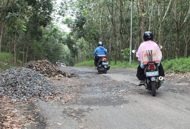Saat ini kata terdapat 8 tumpukan batu cor san sekitar 1 setengah truk pasir serta aspal. Material tersebut untuk perbaikan jalan sepanjang 300 meter. Karena ditolak, maka pekerjaan jalan tersebut terancam terbengkalai.
