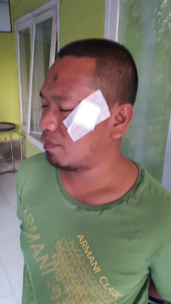 Tanpa basa basi lanjut sadik kades manding laok, iis langsug mukul kepada korban sadik, akibatnya sadik harus masuk puskesmas untuk perawatan sebab memar pada pipi sebelah kanan.