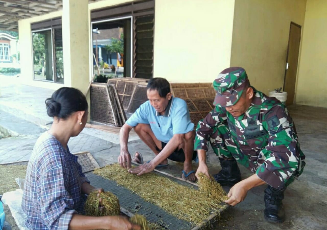 Dengan tidak malu Sertu Siswono langsung membantunya Pak Nurdin menata tembakau dirak yang digunakan untuk menjemur tembakau.