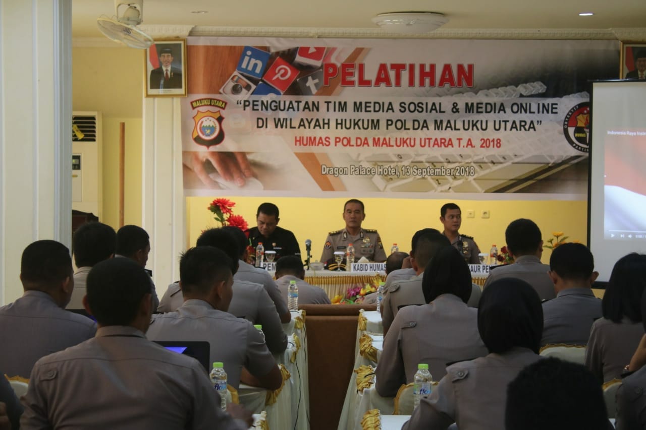 TERNATE, (TransMadura.com) – Kepolisian Daerah (Polda) Maluku Utara Melalui Kabag Humas, gelar Pelatihan Penguatan Tim Media Sosial dan Media Online, Kamis (13/9/2018) pagi tadi. Acara terpusat di Hotel Dragon Kelurahan Maliaro Kecamatan Ternate Tengah Kota Ternate Maluku Utara.