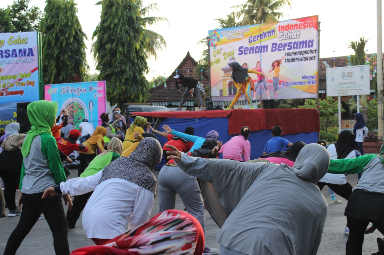 Acara yang diselengarakan masyarakat sumenep, dimulai pukul 5:30 wib pagi bertemakan “Minggu Ceria Dengan Gerakan Sumenep Sehat Melalui Giat Senam Bersama CAR FREE DAY” cukup semarak dan meriah dihadiri kurang lebih 1200 orang pengunjung.