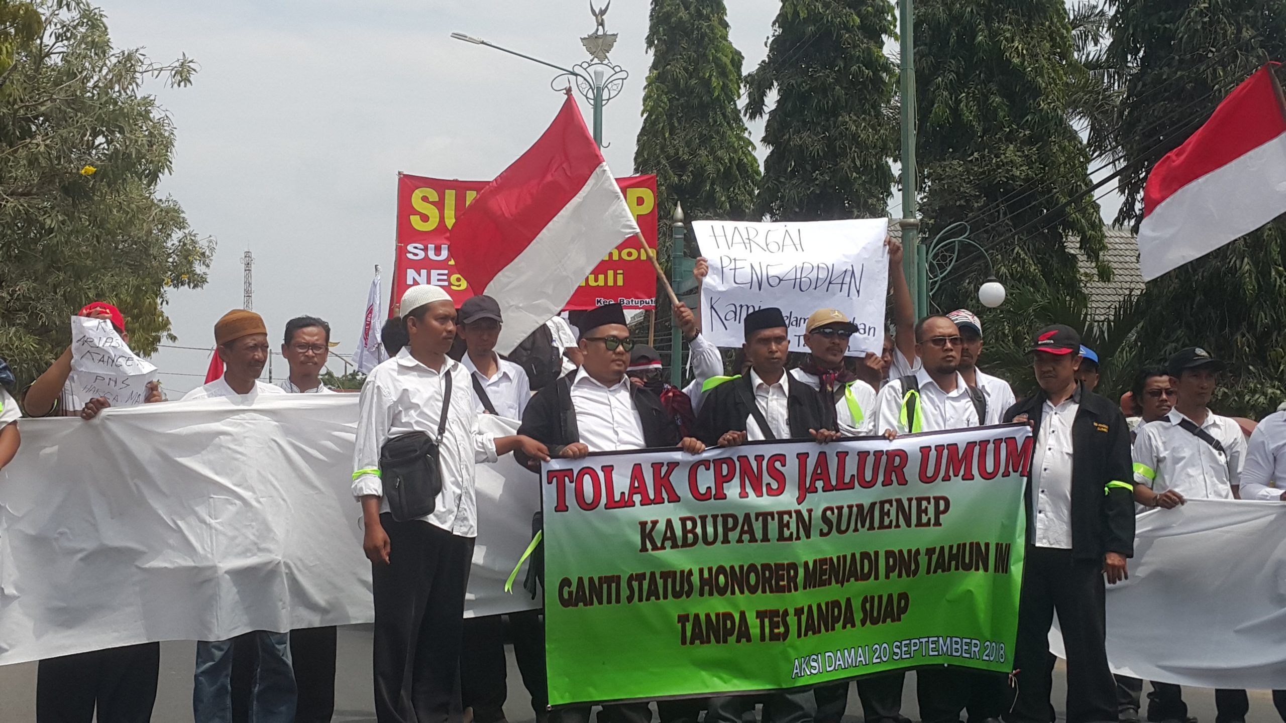 Hingga berita ini ditulis, seribuan massa masih menyampaikan orasinya secara bergantian dengan membacakan beberapa poin tuntutan. Diantaranya, meminta Ketua DPRD Kabupaten Sumenep, Bupati, Wakil Bupati, Sekda mengirimkan surat kepada Presiden Indonesia, Menpan RB, BKN dan DPR RI untuk