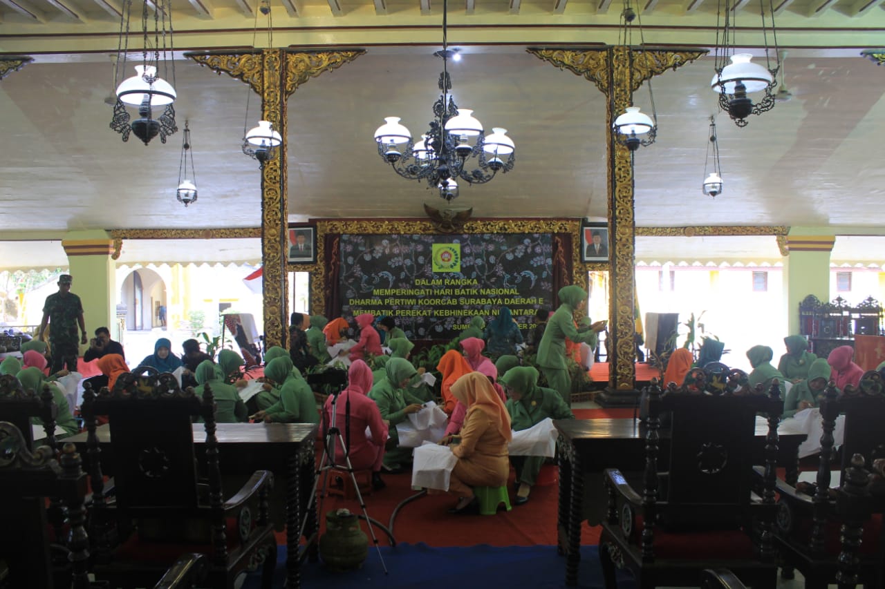 SUMENEP, (TransMadura.com) – Kegiatan Membatik Dalam Rangka Hari Batik Nasional dan Menyambut HUT TNI Ke-73 tahun yang diselenggarakan Persit KCK Cabang XLVI Kodim 0827 yang bertempat di Pendopo Agung Jl. Dr Sutomo Kelurahan Pajagalan Kecamatan Kota Kabupaten Sumenep. Madura-Jawa Timur.