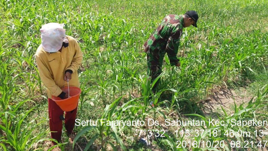 SUMENEP, (TransMadura.com – Proses pemeliharaan tanaman jagung memang harus ekstra, mulai dari penanaman, pemupukan, pemeliharaan sampai panen. Selain itu, perlu memperhatikan faktor-faktor yang menyebabkan adanya gangguan hama yang dapat mempengaruhi hasil tanaman sehingga dengan adanya pemeliharaan yang maksimal harapan para petani terwujud,” ungkap Sertu Fajaryanto.