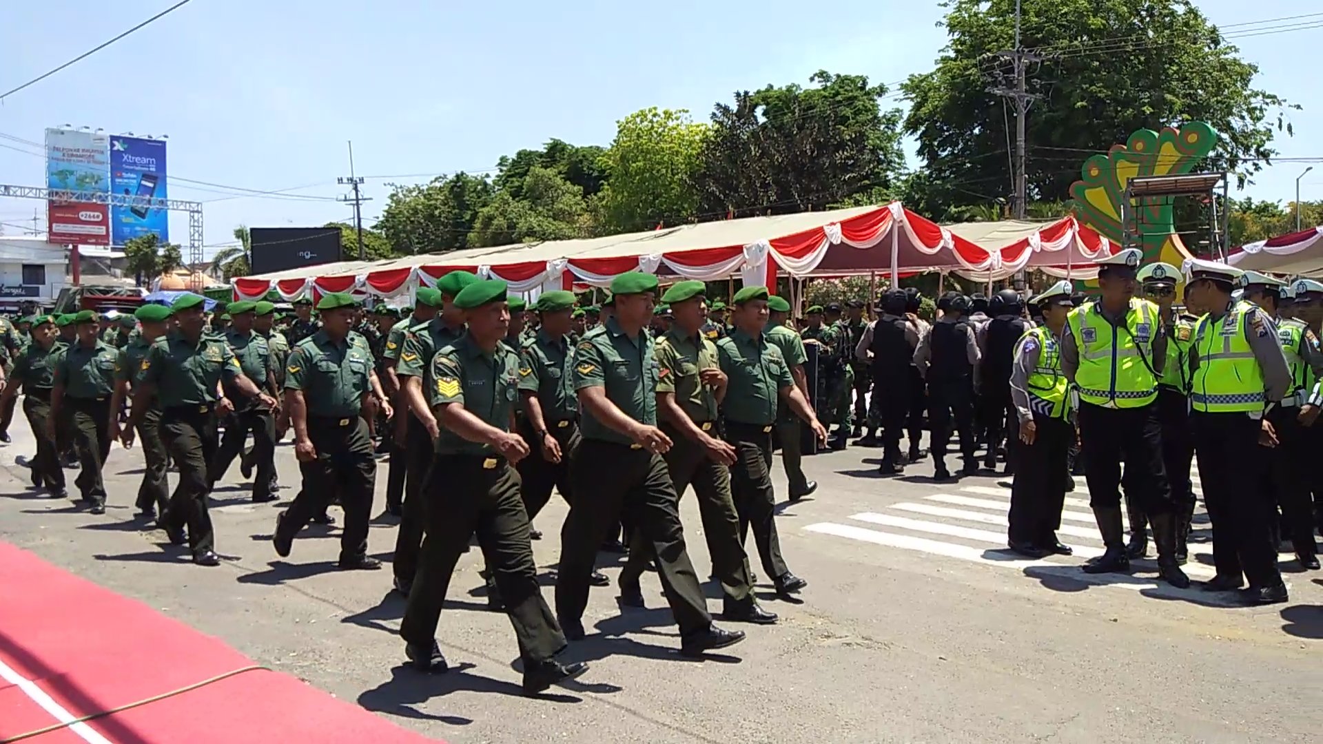 Kesiapan pengamanan kedatangan Presiden RI Joko Widodo ke Kabupaten Sumenep, Madura Jawa Timur, Dandim 0827 Letkol Inf Ato Sudiatna, kembali pimpin apel kedua untuk cek kekuatan pasukan.