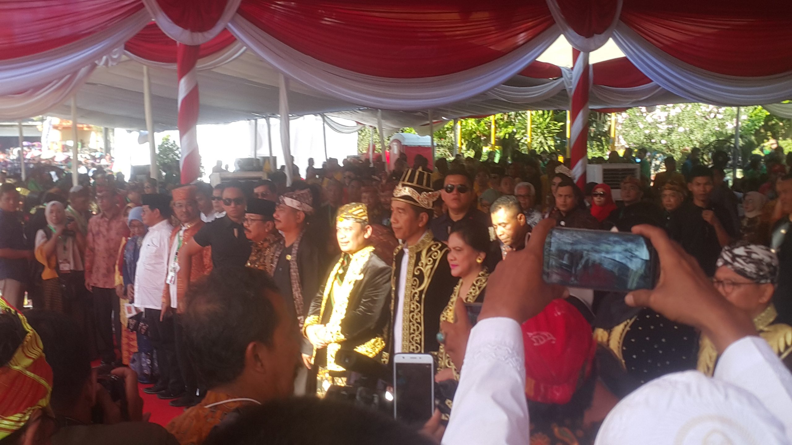 Pembukaan Festival Keraton dan Masyarakat Adat se-Asean 2018 di Kabupaten Sumenep, Madura, Jawa Timur, dibuka langsung Presiden RI Jokowi Dodo didampingi Istrinya Iriana Jokowi Dan sejumlah pejabat tinggi negara.
