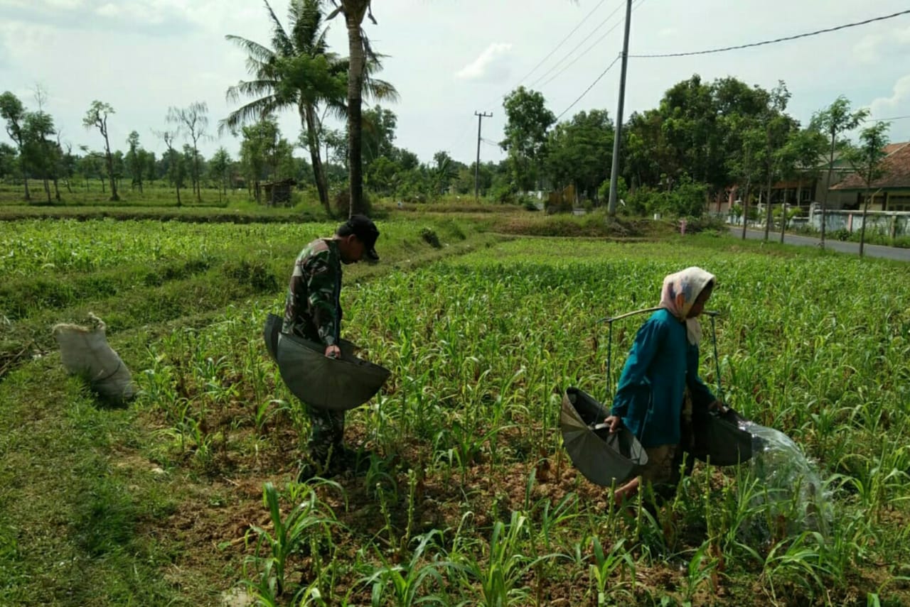 Pada kesempatan kali ini nampak terlihat disebuah lahan yang tidak begitu luas, Babinsa Serka Sartana anggota Koramil 0827/10 Ambunten membantu menyiram tanaman jagung dengan mengambil atau memukul air untuk disirankan ke tanaman jagung dengan harapan tanaman jagung tersebut dapat tumbuh serta menghasilkan panen yang melimpah.
