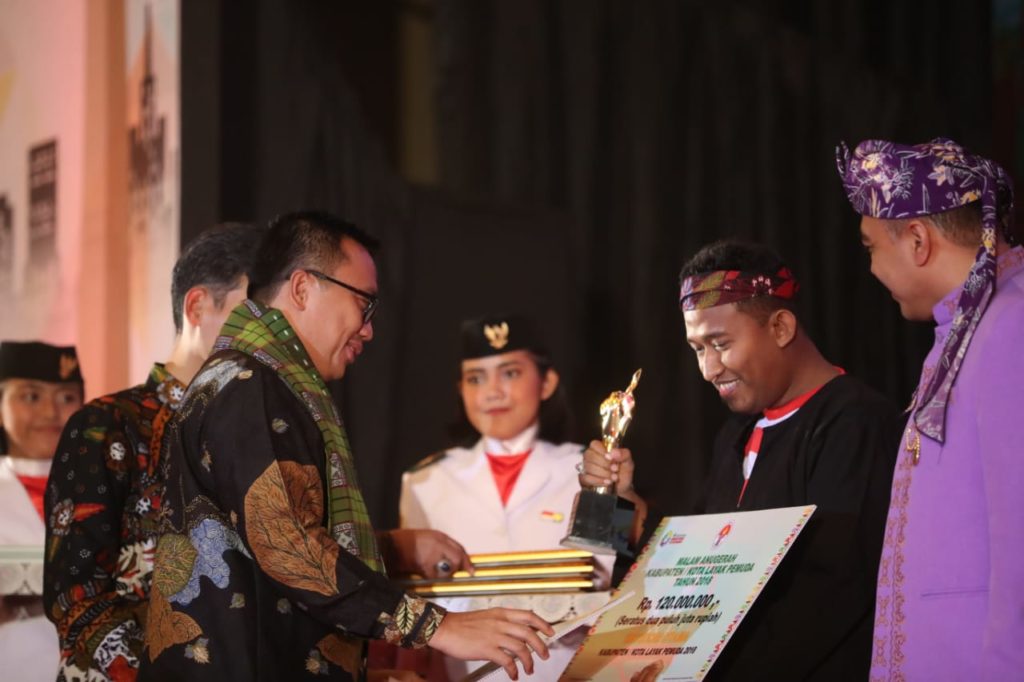 Slogan penghargaan ini, diterima oleh Wakil Bupati Sumenep, Ach Fauzi SH dari Menteri Pemuda dan Olahraga, di Jakarta, Senin Malam (29/10/2018). Prestasi ini layak diterima lantaran Kabupaten ujung timur pulau Madura ini peduli kalangan pemuda.
