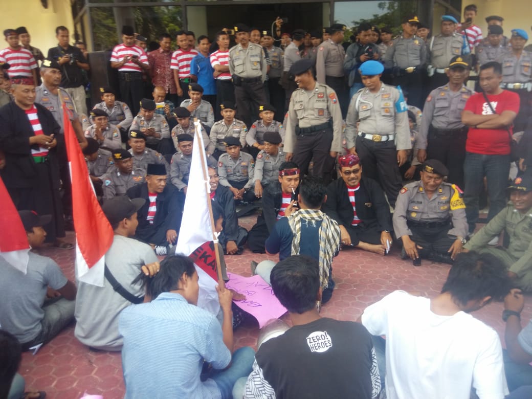 Aksi tersebut, menuntut Bupati terkait Penangguhan Pencairan Dana semua program Rehabilitasi Pemeliharaan Berkala jalan DHCHT earmark tahun 2018.