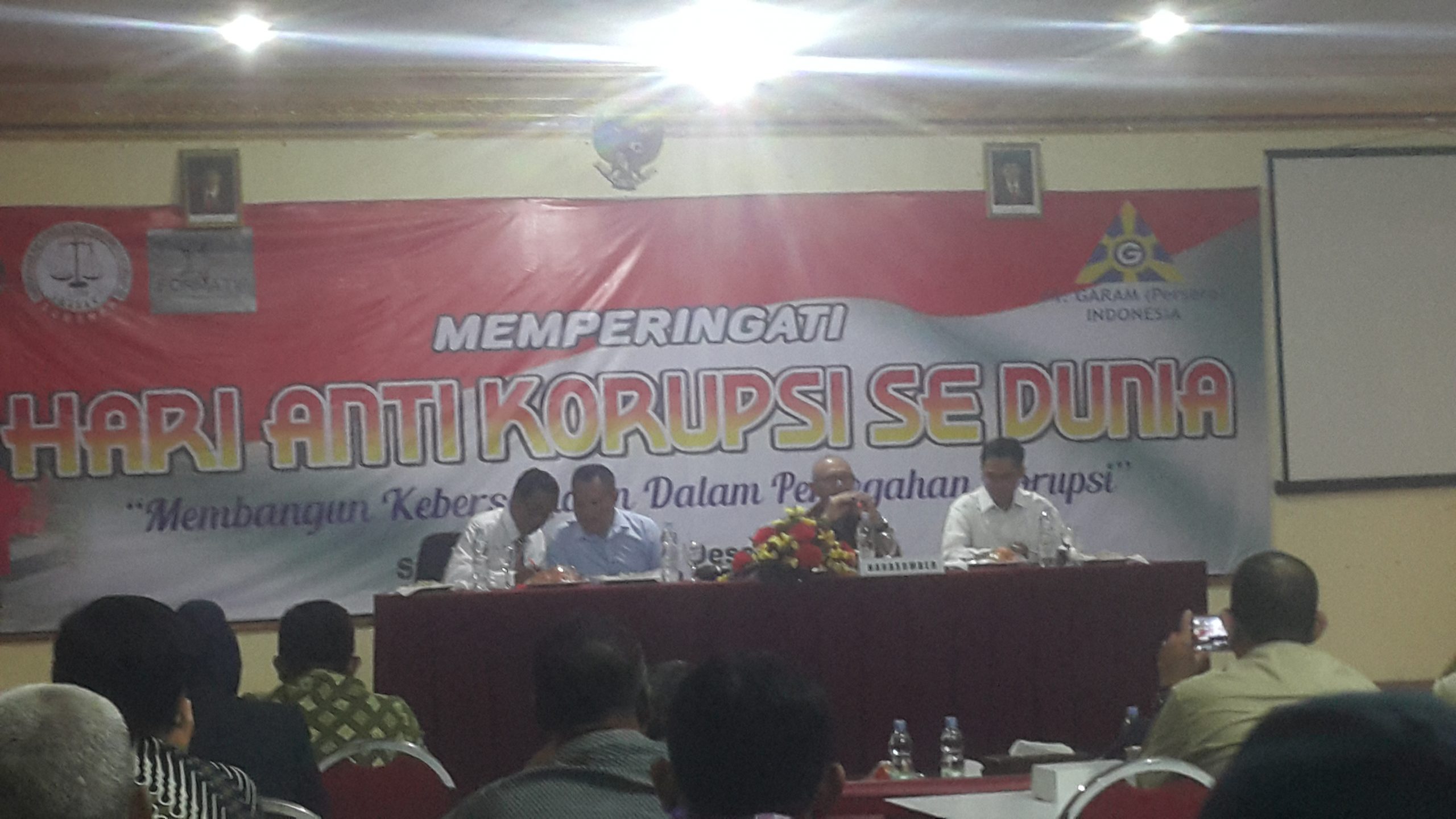 Penyidik Pidana Korupsi (Pidkor) Satreskrim Aipda Hariyono saat menghadiri acara memperingati hari Anti Korupsi yang digelar koalisi LSM, DPC LIPK, DPC LAKI, GARIS, GASAK dan Formatif. Di hadapan peserta Hariyano menyatakan kasus tersebut akan diusut tuntas.