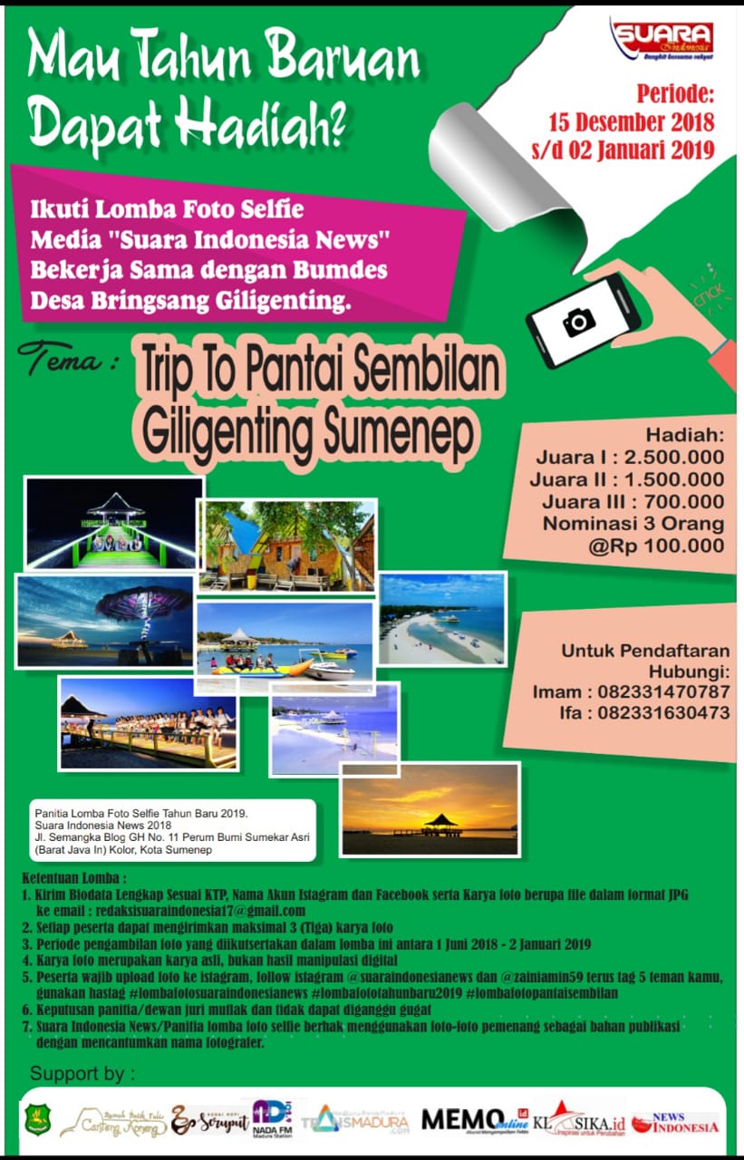 Sementara tema yang diusung dalam lomba foto selfi tersebut, adalah : “Trip To Pantai Sembilan Giligenting Sumenep”.