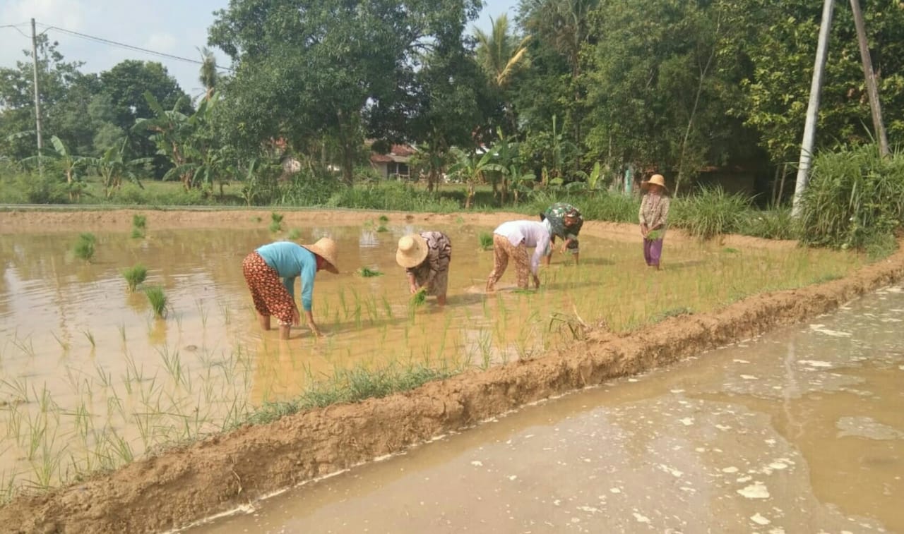 Nampak terlihat di pematang sawah, kehadiran Babinsa di sambut baik oleh para petani. Mereka menjadi sangat bersemangat tak menghiraukan sekalipun panas terik matahari dalam menanam padi bersama warga binaan dengan.