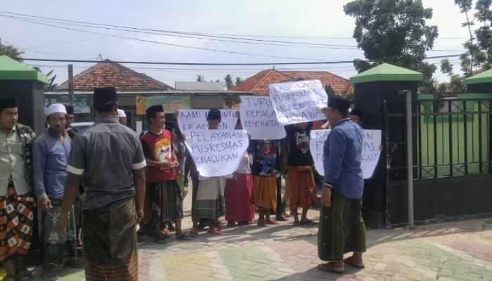 Aksi demo bentuk protes dari keluarga Pasien saat dirawat di Puskesmas tersebut yang sudah kritis sampai keluarga pasien meminta untuk di rujuk rawat ke RSUD Dr Moh Anwar Sumenep, Madura, Jawa Timur.
