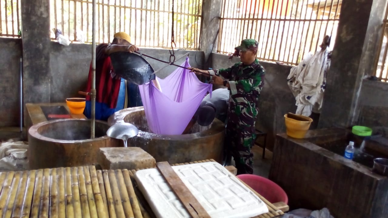 SUMENEP, (TransMadura.com) – Babinsa Koramil 0827/05 Lenteng Sertu Syaiful Imam melaksanakan kunjungan ke pengusaha tahu kapasitas produksi 150kg/hari. Untuk melihat proses pembuatan tahu yang diproduksi milik Bapak Sidik di Dusun Jepun Timur Desa Lenteng Kecamatan Lenteng Kabupaten Sumenep. Minggu (3-2-2019).