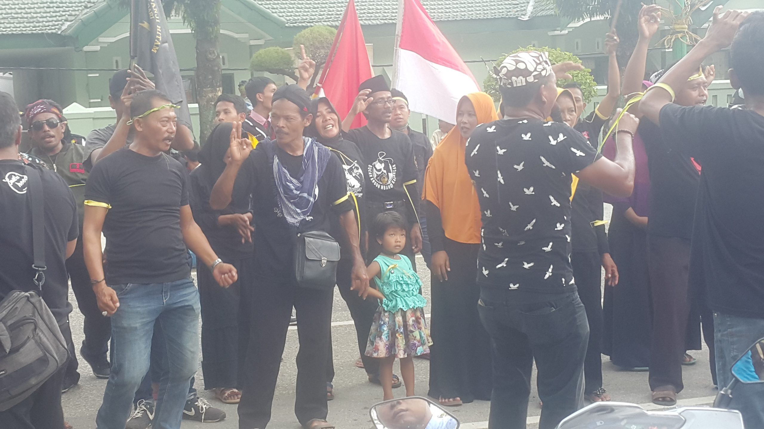 Selain itu sebagain massa aksi juga membawa anak kecil. Bahkan, sebagian massa aksi tampak berorasi sambil menggendong anak dibawah umur.