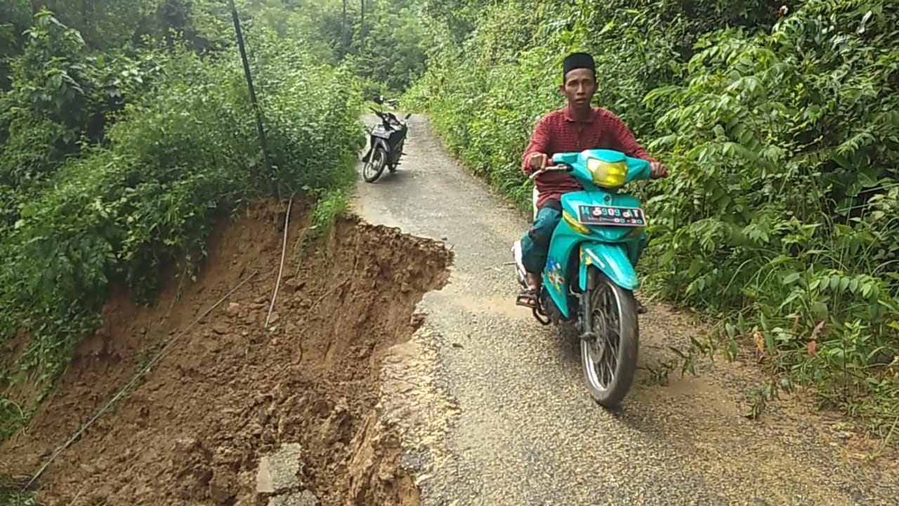 “Kalau untuk kendaraan roda dua, masih bisa dilalui. Tetapi harus tetap waspada. Sebab, separuh dari badan jalan longsor dengan kedalaman berkisar 3 meteran,” ujar Zainuddin, warga setempat.