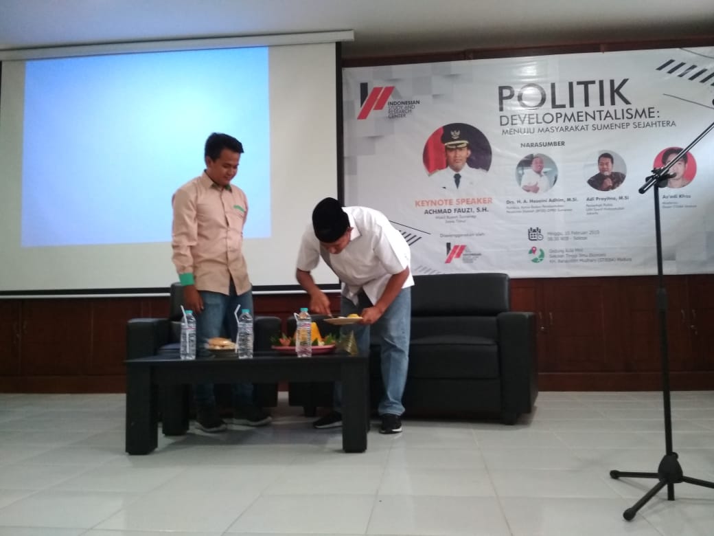 Achmad Fauzi yang hadir sebagai keynotespeaker sekaligus mengesahkan ISRC sebagai lembaga penunjang di Sumenep dengan simbol pemotongan tumpeng, menyampaikan bahwa sangat apresiatif dengan hadirnya ISRC di tengah-tengah masyarakat Sumenep, apalagi ISRC di gawangi oleh anak-anak muda yang potensial dan pemberani.
