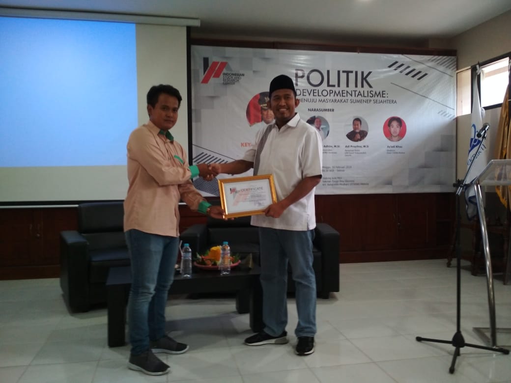 Shohibul Umam dalam sambutannya menyampaikan, dengan hadirnya ISRC di tengah-tengah masyarakat Sumenep bisa menjadi puzzle yang menyempurnakan kerja-kerja politik pemerintah dan badan-badan yang memiliki otoritas lainnya untuk pembangunan masyarakat.