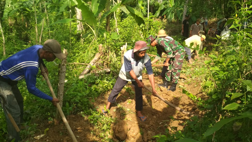 Koramil 0827/13 Rubaru Bersama Warga Membangun Jalan Tembus