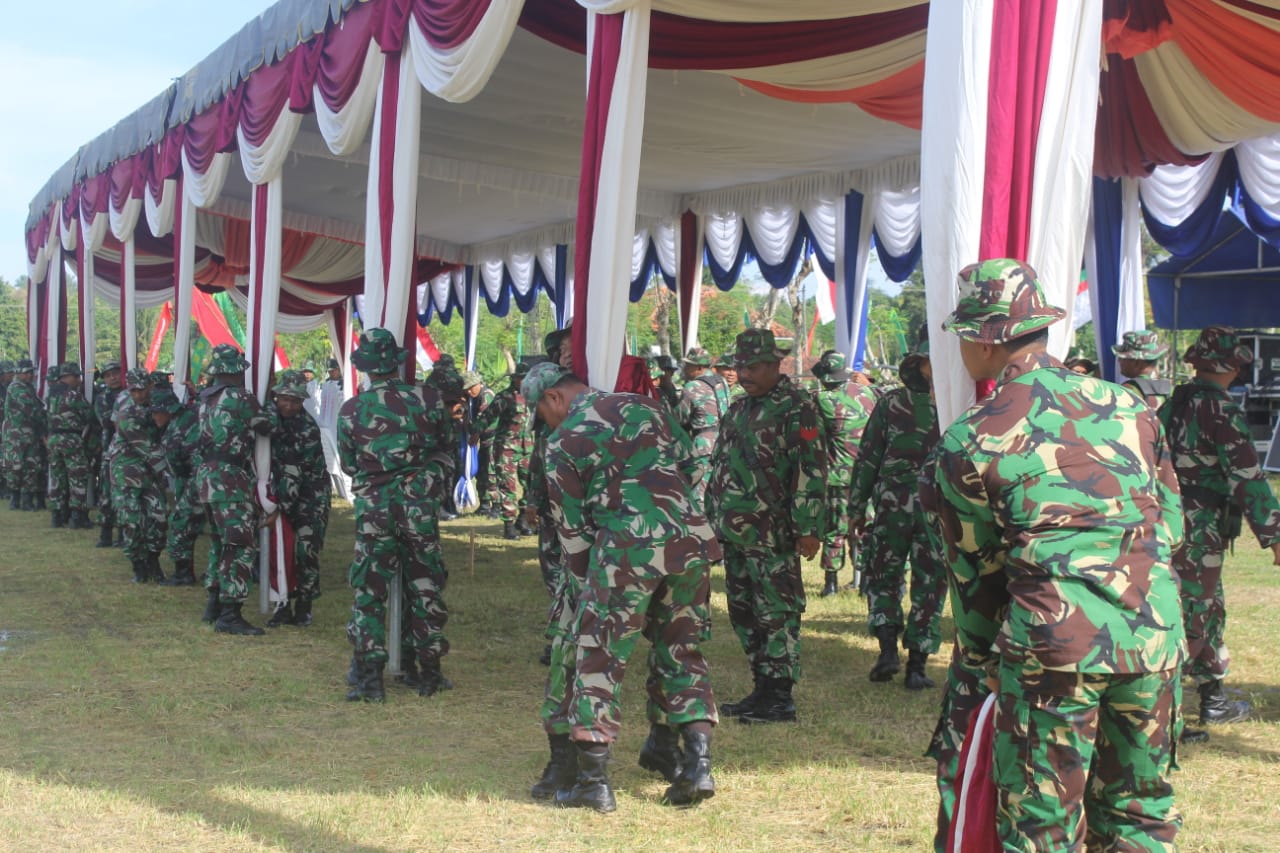 Pasukan Komando Distrik Militer (Kodim) 0287 dan Satuan Kepolisian Resort (Polres) Sumenep dengan tegar dan semangat agar pelaksanaan upacara itu berjalan dengan sukses.